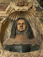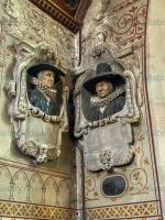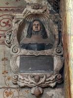 St Werburgh's Church, Hanbury [Map]. Puritan busts in the Chancel to Dorothy Villiers, died 1658, and Katherine Agard, died 1620, and her daughter, Ann Woollocke, both with ruffs and steeple hats.