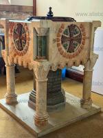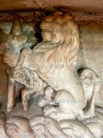 St Werburgh's Church, Hanbury [Map]. Font of coloured local alabaster and imported marble; square on 4 extended columns and built over the carved Norman font, still discernible within the present composition.