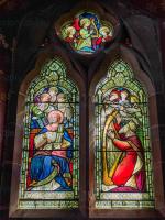 St Werburgh's Church, Hanbury [Map]. East and west window by Ward and Hughes of 1894 and south chancel windows.