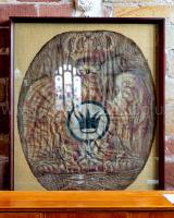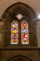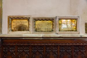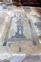 1495. Brass to Peter Gerrard. Beneath the floor is the family vault. This has not been used since the Reformation..
