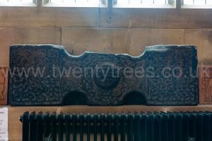Around 750. Arm of Anglo-Saxon Cross found in the churcyard St Oswald's Church, Winwick [Map] in 1873.