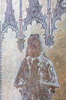 1527. Brass to Peter Leigh (age 72) and Eleanor Savage (age 75). The only example of a brass with a Priest in armour with sword. He became a Priest after his wife died. .