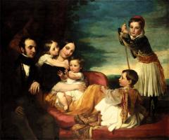 1841. George Frederick Watts (age 23). Portrait of the Ionides Family with [her father] Alexander Constantine Ionides (age 30), his wife [her mother] Euterpe Sgouta (age 24) and their four children including, fouth from left Aglaïa Coronio née Ionides (age 6).