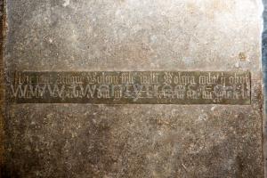 On 31st October 1479 [her daughter] Anna Boleyn (age 3) died. Brass in St Andrew's Church, Blickling [Map]. Her incription reads "Hic iacet Anna Boleyn, filia Willi; Boleyn, Armigeri, Etatis trium Annorum undecem Mensum et tredecem Dierum, que obiit ultimo Die Mensis Octobr' Anno Domini Mcccclrrir cuius anime propicietur Deus Amen." i.e. "Here lies Anne Boleyn, daughter of Will; Boleyn, Squire, of the Age of Three Years, Eleven Months and Thirteen Days, who died on the last Day of the Month of October, in the Year of the Lord Mccclxxix, whose soul may God have mercy on him, Amen." The amorial shows her [her husband] father's (age 28) and mother's (age 25) quartered.