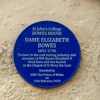 On 15th February 2018 HRH The Prince of Wales (age 69) unveiled a plaque at Bowes House, St Johns College, South Bailey, Durham to Dame Elizabeth Bowes 1651-1736 nee Blakiston, ancestor of his mother [his mother] Queen Elizabeth II of the United Kingdom (age 91).