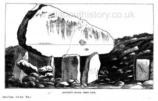 So much has been said and written about Arthur's Stone [Map], that stands sentinel like on the lonely top of Cefn Bryn, and so many antiquarians have speculated upon its origin and history, that one was apt to look upon the excursion, on August 29th, of the Swansea Scientific Society as a pleasure- able rather than investigative one. A happy discovery on the part of Col. Morgan and Mr. C. H. Glascodine made it both. The members of the Society left the Royal Institution of South Wales at 2 o'clock in coaches supplied by Mr. J. H. Rosser.