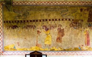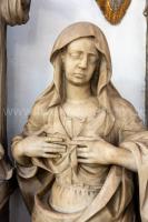 A curious lion at his feet. Unlikely the carver had ever seen a lion.