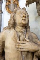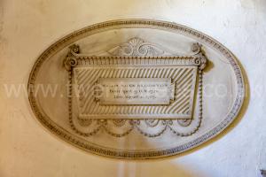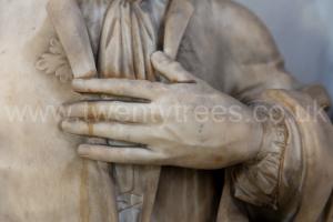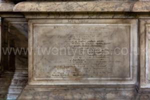 His widow Lady Frances (age 34) chose Michael Rysbrack (age 60) to erect her husband's monument in the classical style. The Agreement was made on the 21 March 1750 and cost £485. The long Latin inscription was composed by William King (age 69), principal of St Mary's Hall, Oxford.