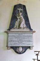 After 1795. St Peter's Church, Llanbedr [Map]. Monument to Ursula Lloyd (age 73), her son John Lloyd (age 49) and his wife Margaret Morrall (age 32). Sculpted by S&T Franceys of Liverpool. Originally in the old church. A white marble tablet with moulded cornice and a surmounting sculpted figure of Faith; shallow obelisk behind, of dark grey figured marble, and a shaped grey marble apron with wreathed heraldic roundel.