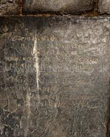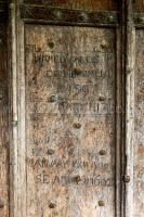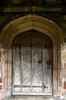 Around 1420. St Saeran's Church, Llanynys [Map]. West door with graffiti.